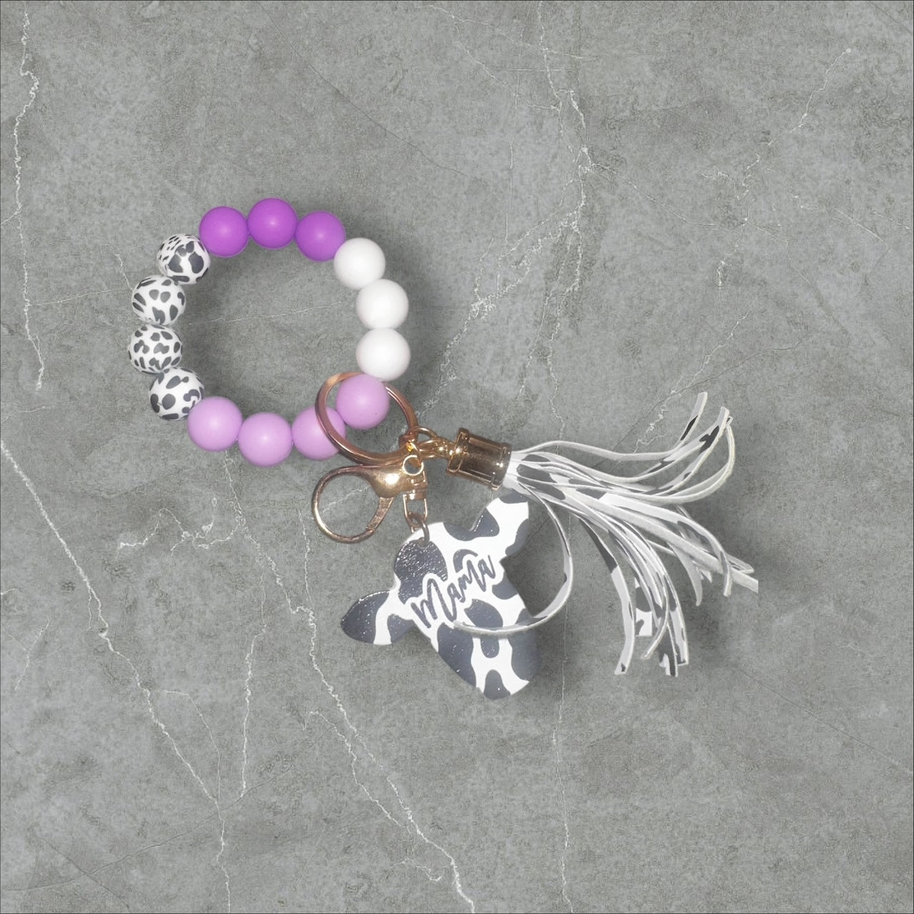 This Cow Print MAMA Tassle Wristler is not only stylish, but also highly functional. The cow print design adds a fun touch, while the wristlet and tassle provide convenience and easy access to your essentials. Perfect for busy moms on the go.