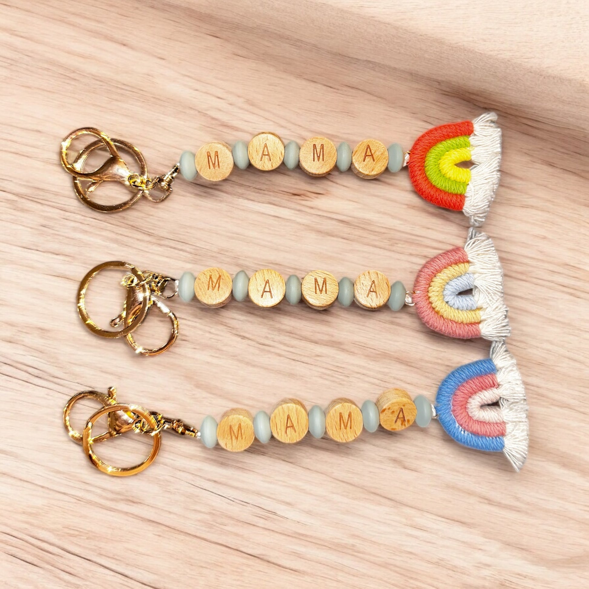Expertly crafted and lovingly handmade, our MAMA Keychain is a must-have for all proud moms. With its vibrant rainbow design, it's a stylish accessory that shows off your love for motherhood. Made with care and attention to detail, this keychain is the perfect way to carry a reminder of your little ones with you wherever you go.