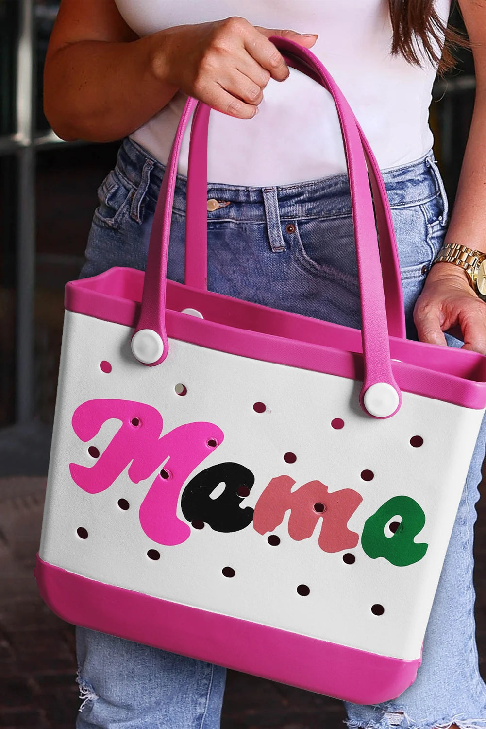 Rose Red mama Print Self-assembly Straps Hollowed EVA Beach Bag