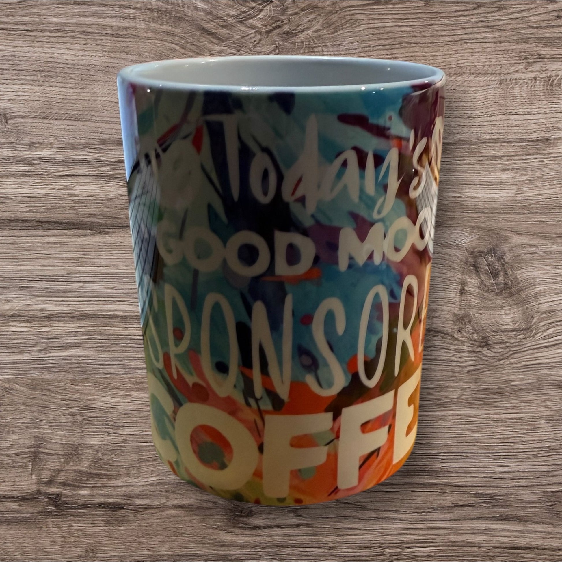 Boost your mood with our 15 oz "Today's Good Mood is Sponsored by Coffee" mug. Keep your coffee hot or your water cold while spreading positive vibes. Perfect for coffee lovers to start their day on a good note. Cheers to a good mood, sponsored by coffee!