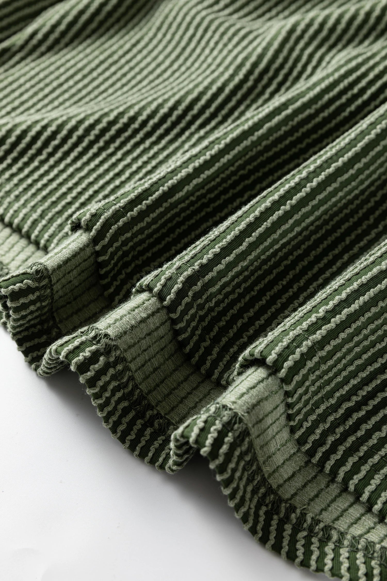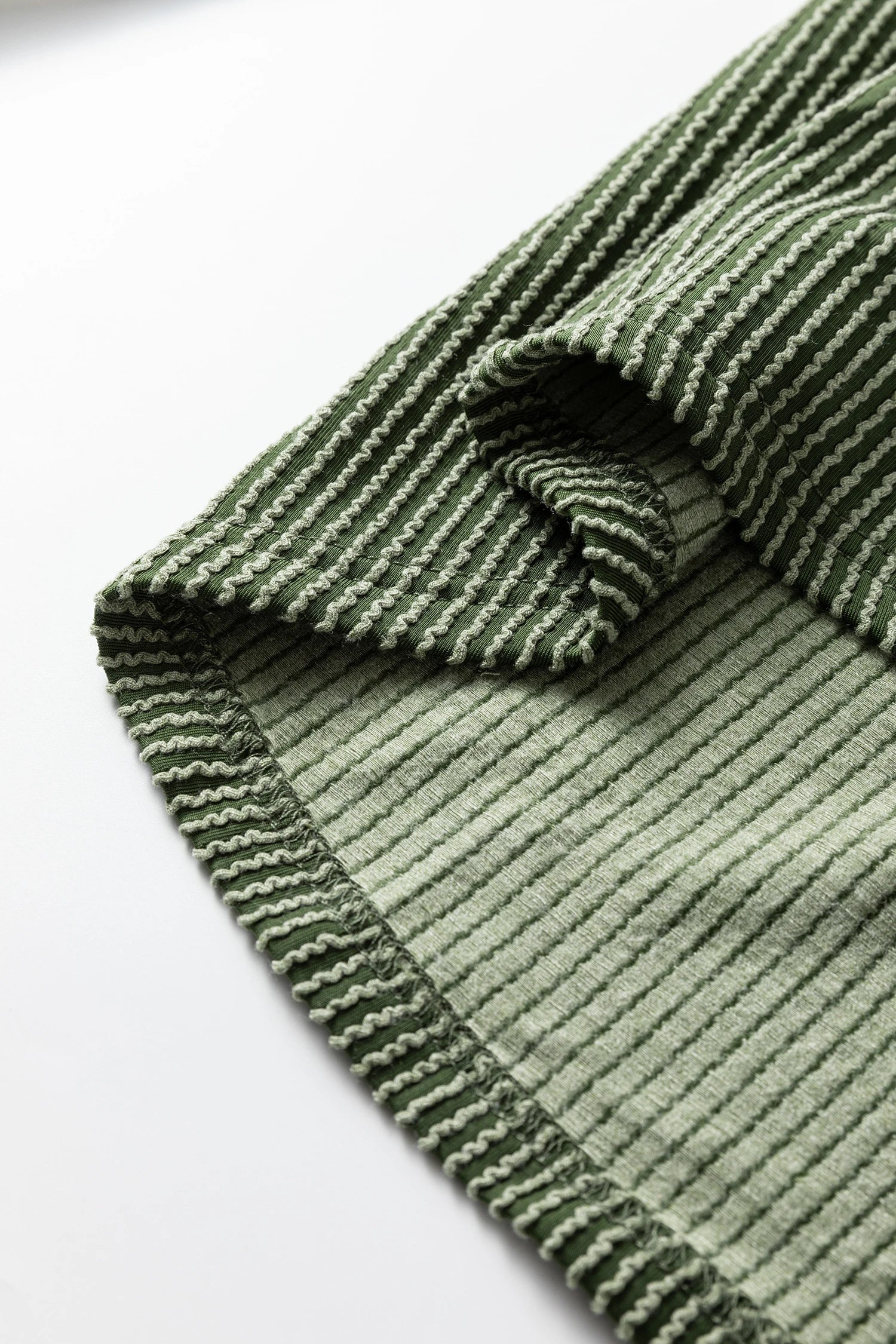 Vineyard Green Twisted Ribbed Leopard Lace Contrast Patchwork Long Sleeve Top