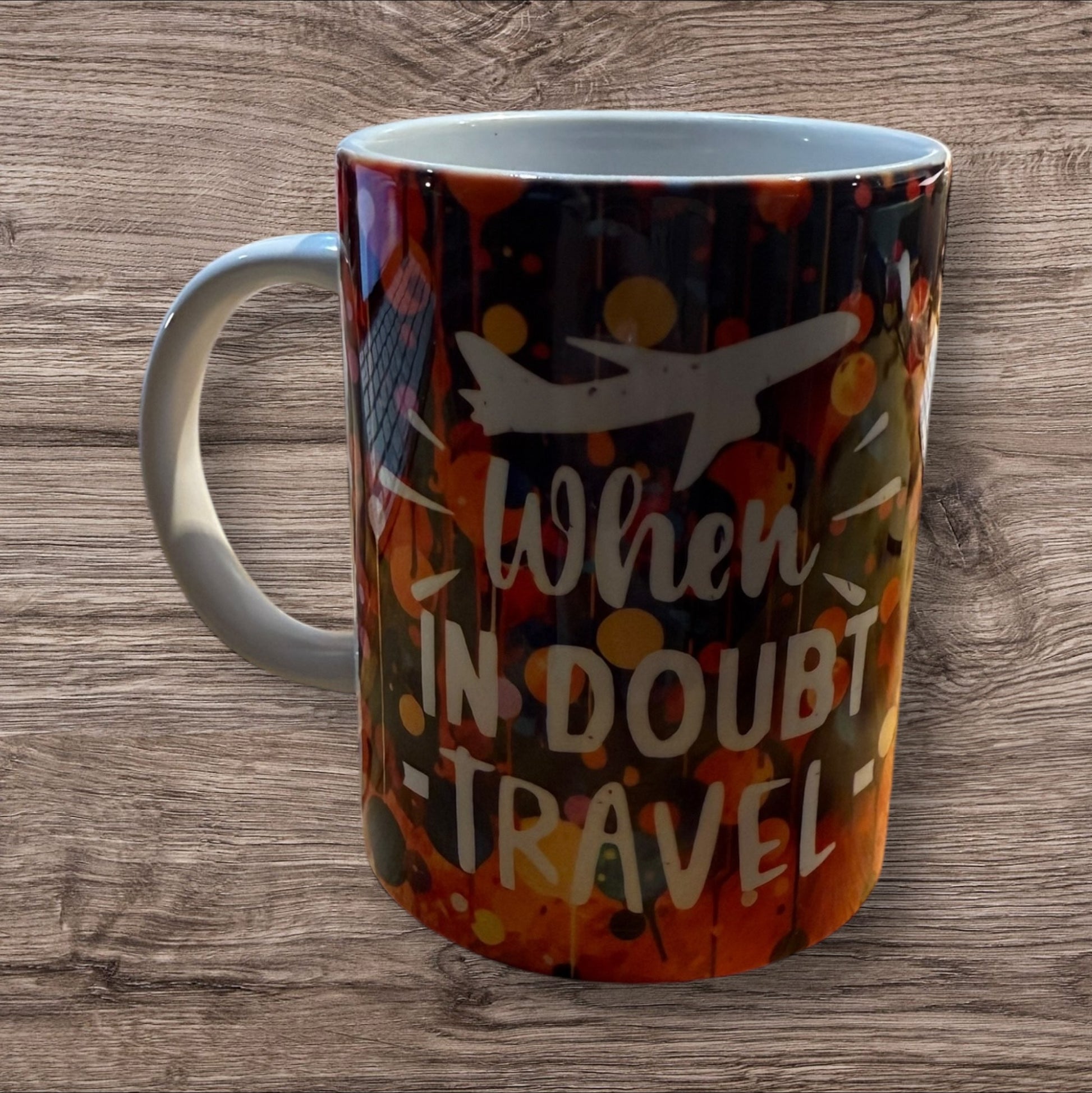 Introducing our When In Doubt Travel Coffee Mug, designed to hold 15 oz of your favorite beverage. With its sleek design and sturdy construction, you can take it on-the-go and never have to worry about spills or leaks. Start your day off right with a hot cup of coffee in hand.