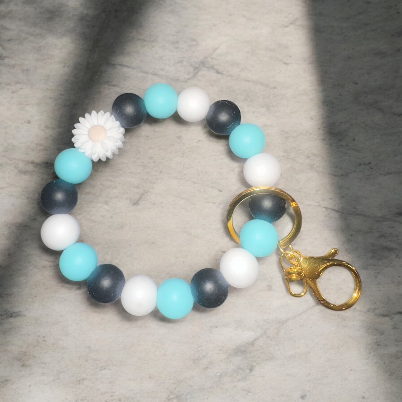 Introducing our Sunflower Wristlet, a stylish and practical accessory for any outfit. Made with a beautiful white, teal, and black sunflower design, this wristlet is the perfect size for carrying essentials on-the-go. Elevate your look with this must-have wristlet.